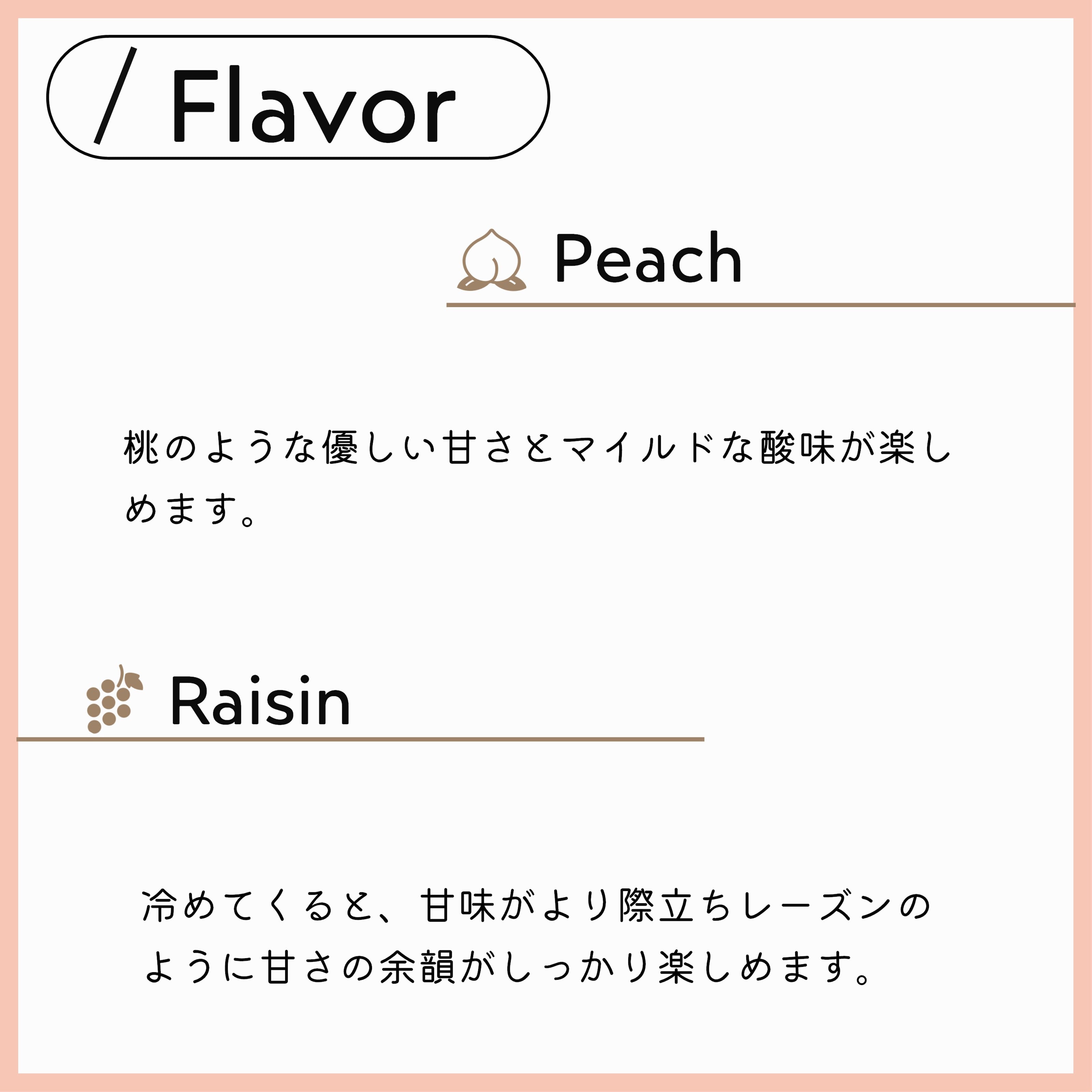 入れたてはピーチのような酸味と甘み、冷めてくるとレーズンのようにしっかりと余韻